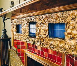 В доме насчитывается 22 комнаты, каждая из которых по-своему уникальна и индивидуальна. На второй этаж ведет узорная кованая металлическая лестница.